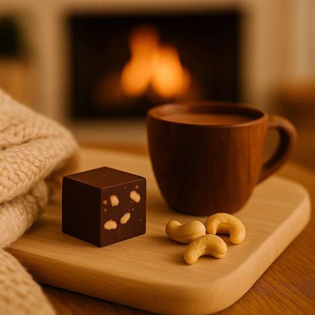 la force du cacao et la chaleur des fruits à coque, unis dans un instant de plaisir sincère.